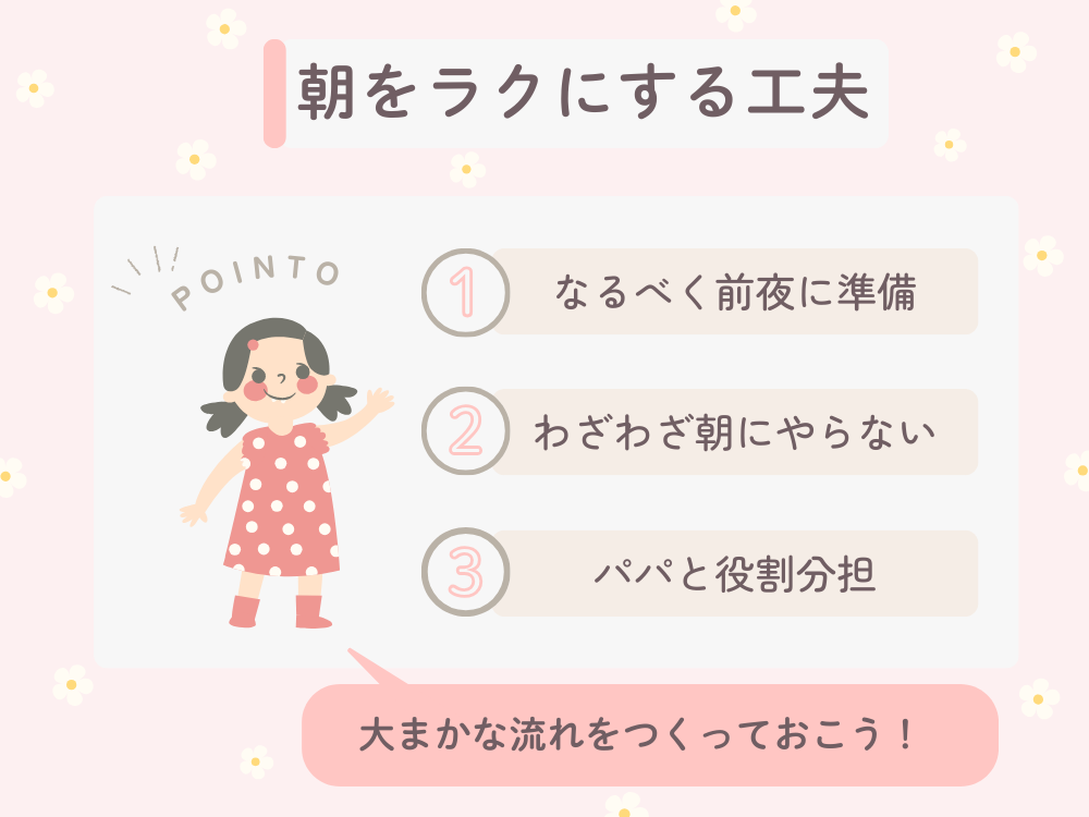 朝のバタバタを少しでも減らすために、パパと役割分担することも意識していて、